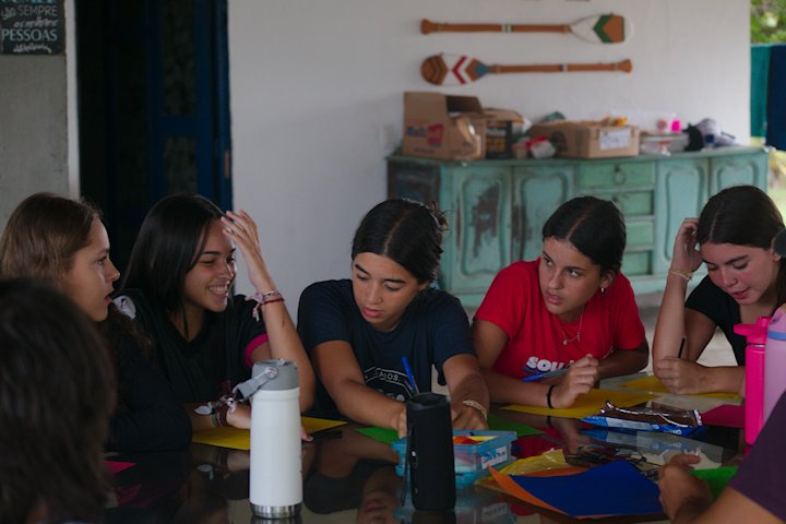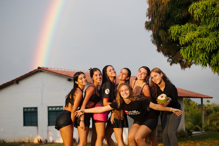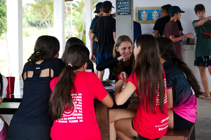 Teve muita altinha, futevôlei, jogo de carta, xadez, violão, banho de psicina, viuvinha, arco-íris e muuuuuuuuuuuuuuuito mais! Para finalizar o dia, se reuniram em volta da fogueira para admirar o céu estrelado, coisa que não se acha em qualquer cidade grande…