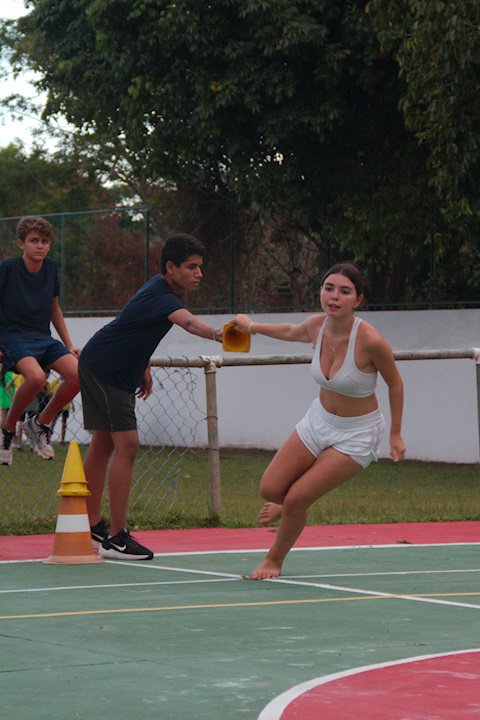 Depois do Campismo, nossas Araponguinhas estavam muuuuito cansadas, então ganharam uma folga e cochilaram após o almoço! Com esse soninho revitalizador já estavam prontas pra mais uma, partiram para a quadra e encararam um jogo de Ludo gigante e doidão! Algumas modificações foram feitas em relação ao tabuleiro original e o objetivo era simples, correr em círculo o mais rápido possível para colocar 5 cones em seu bambolê. Mas cuidado, ao chegar perto da vitória é certo da outra equipe tentar te saquear!!