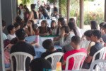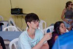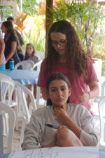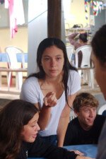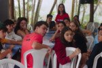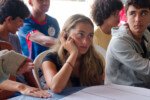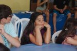 Amanheceu chovendo canivetes no Arraial, nem parece que é verão… Nesse climinha frio e lamacento não dava para correr pelo sítio, afinaaaaal, não queremos que seus filhotes gripem! Por isso, reunimos os dois grupões mais velhos do acampamento e jogamos todo mundo no refeitório para uma batalha de Stop Gigante!