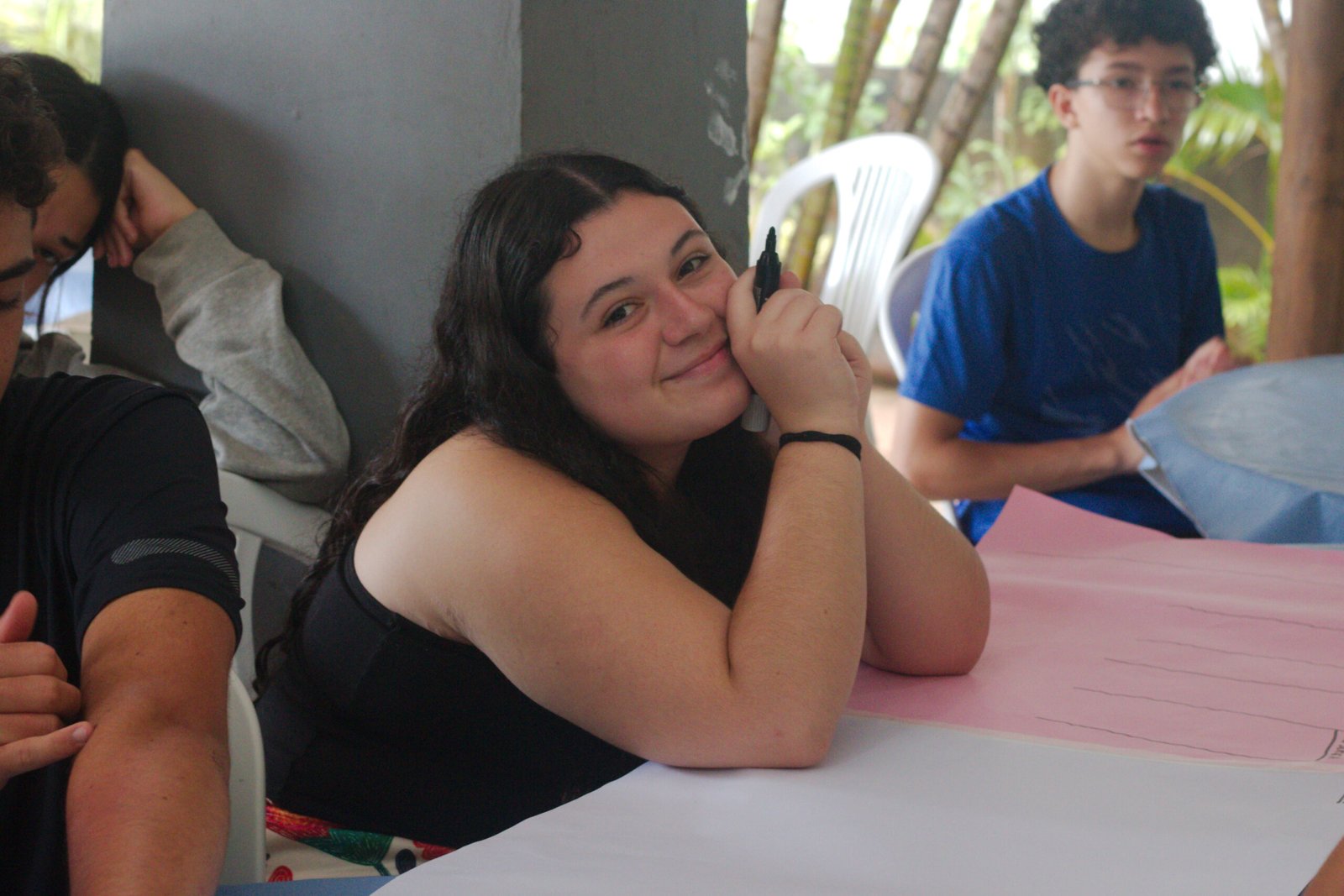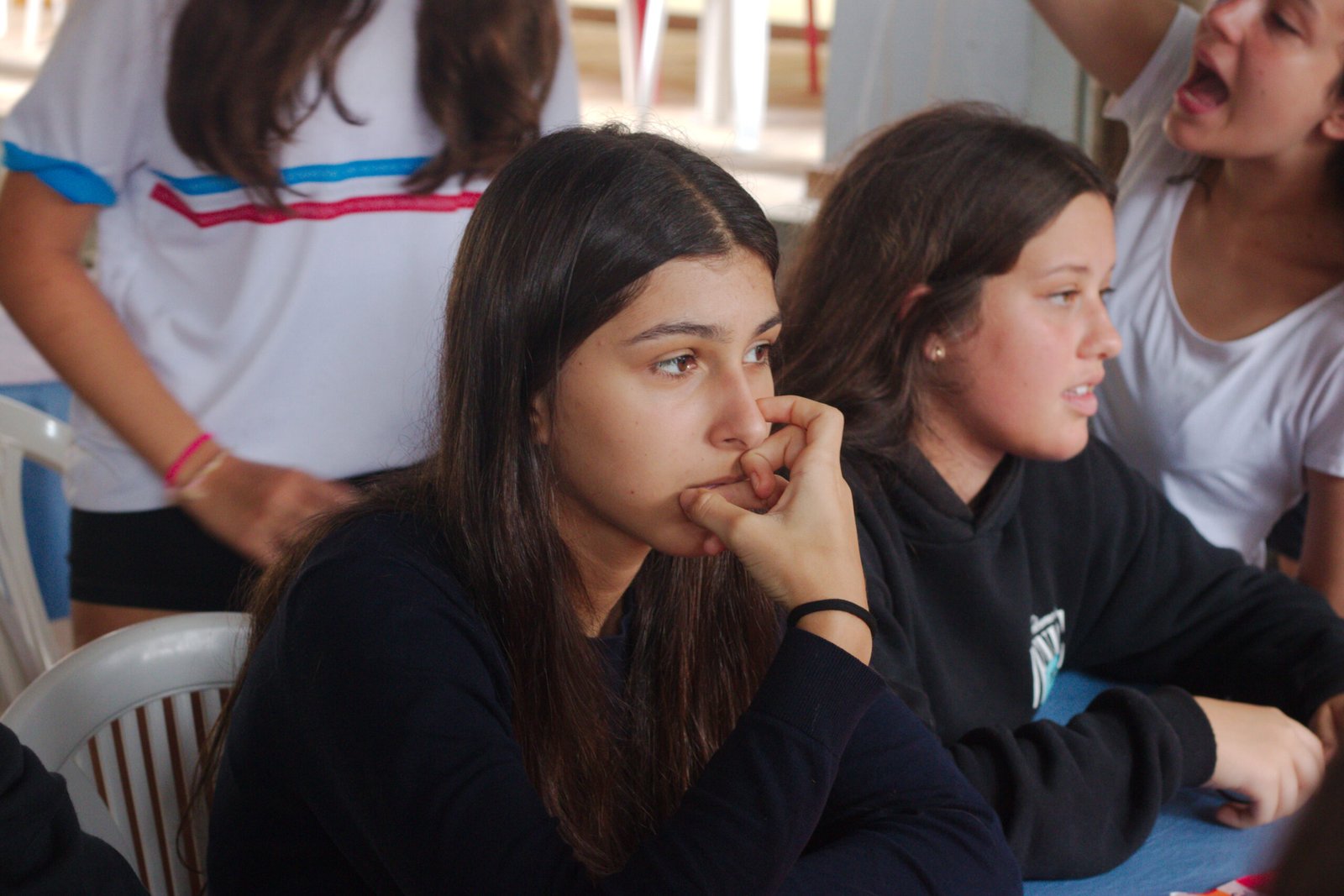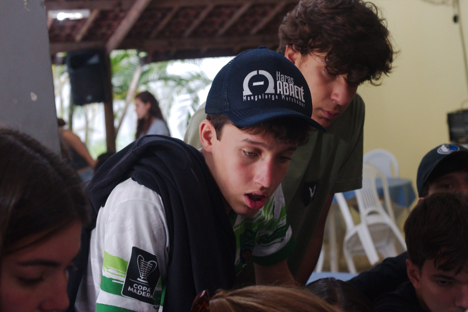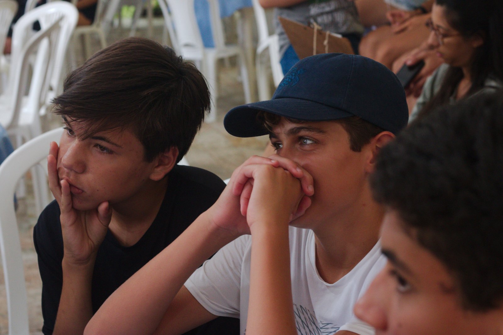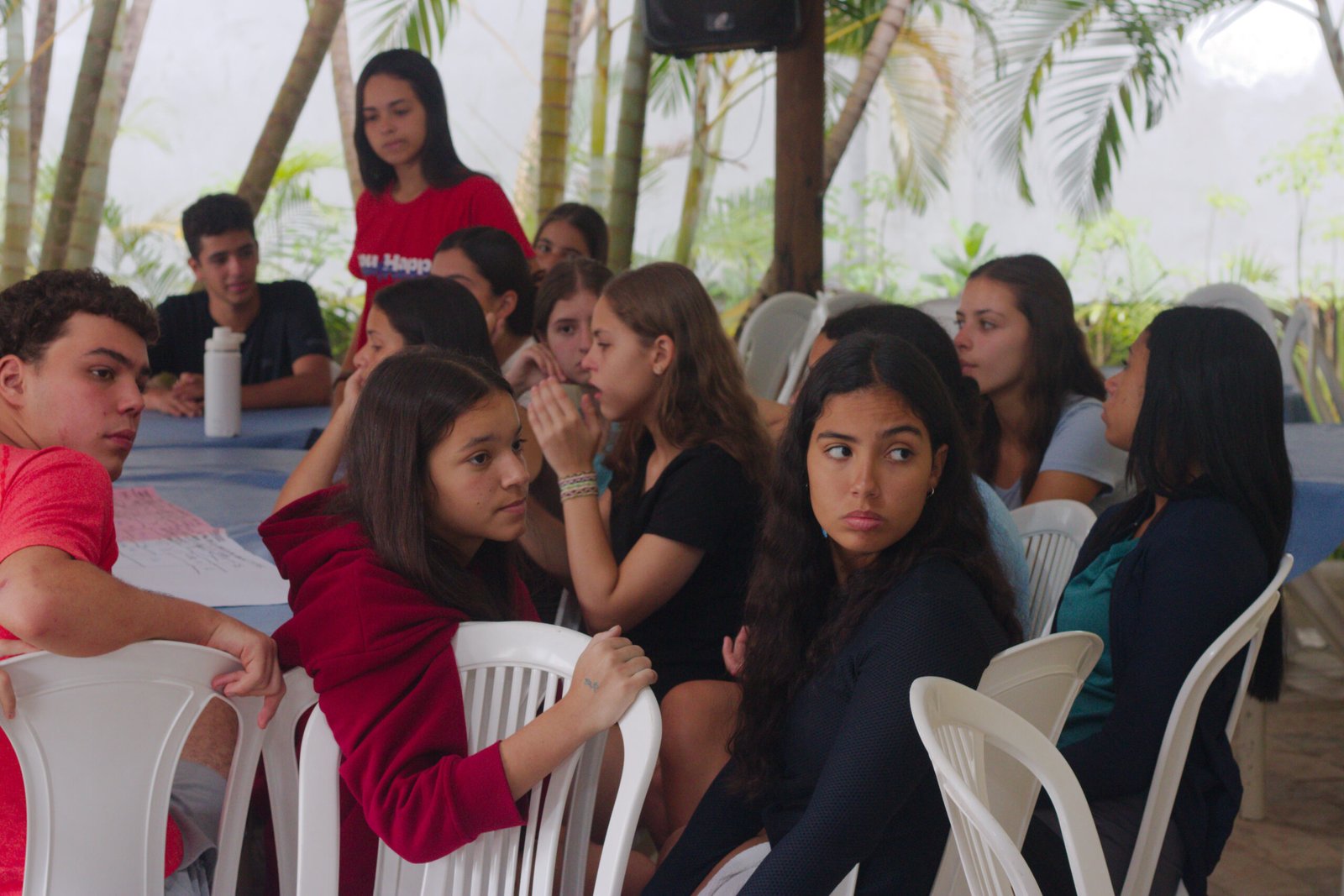 Amanheceu chovendo canivetes no Arraial, nem parece que é verão… Nesse climinha frio e lamacento não dava para correr pelo sítio, afinaaaaal, não queremos que seus filhotes gripem! Por isso, reunimos os dois grupões mais velhos do acampamento e jogamos todo mundo no refeitório para uma batalha de Stop Gigante!