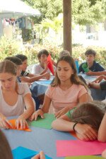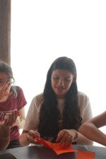 Depois de um almoço farto e um descanso revitalizante, nada melhor para os nossos bacuraus do que uma oficina que estimule a atenção e a autonomia. Sim, estou falando do origami! A conhecida e tradicional arte japonesa de dobrar papel, entre tantos benefícios, ainda funciona como uma terapia! E como tudo por aqui é sobre pássaros, é claro que o produto final dessa oficina seria formar um belo passarinho. E num passe de mágica (na verdade, sob as orientações do tio Tom), os retângulos de papel deram vida a diversos mini bacuraus!
