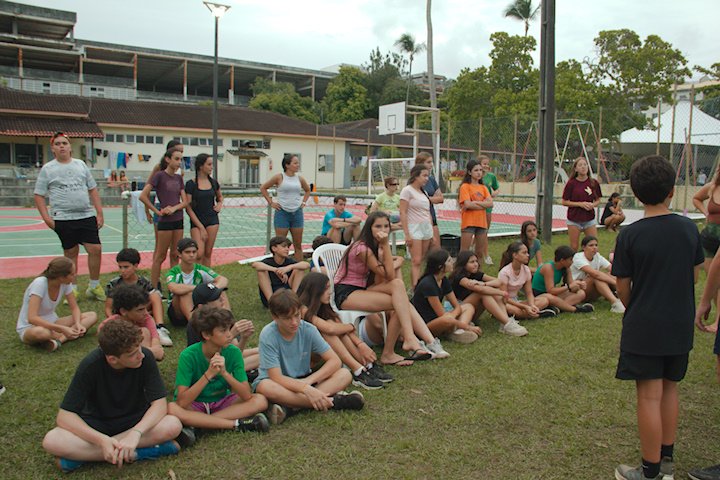 E depois de deixar os passarinhos de papel voarem, os passarinhos ‘de verdade’ foram para o campinho jogar Flag, uma versão arraialesca do futebol americano. E com um grande diferencial: a explicação e a condução do jogo foram feitas pelos próprios acampantes! Quanta autonomia, não é mesmo?