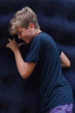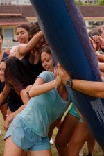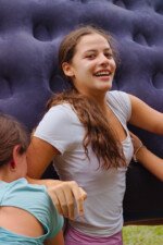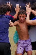 Após o lanche, estavam cheios de energia e partiram para um dos jogos mais amados do Arraial: A Muralha! Com um pouquinho imaginação, papais, vocês verão que um colchão de ar não é apenas isso, mas sim um gigantesco muro colossal que seus filhos, fortes como são, empurraram até território inimigo, numa batalha monumental que os levou a vitória certa!