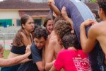 Nessa beeeela manhã os Araponga precisavam se refrescar! Encheram várias bexigas de água e partiram para o bosque, onde encontraram um caminho de obstáculos a ser percorrido! E tudo isso com a bexiga em mãos, sem derrubar! Ao fim, tinham que sentar na bexiga com toda a força para estourá-la!