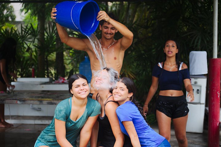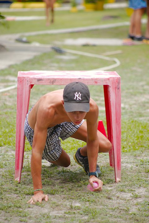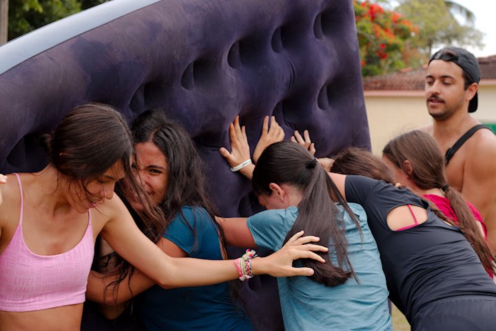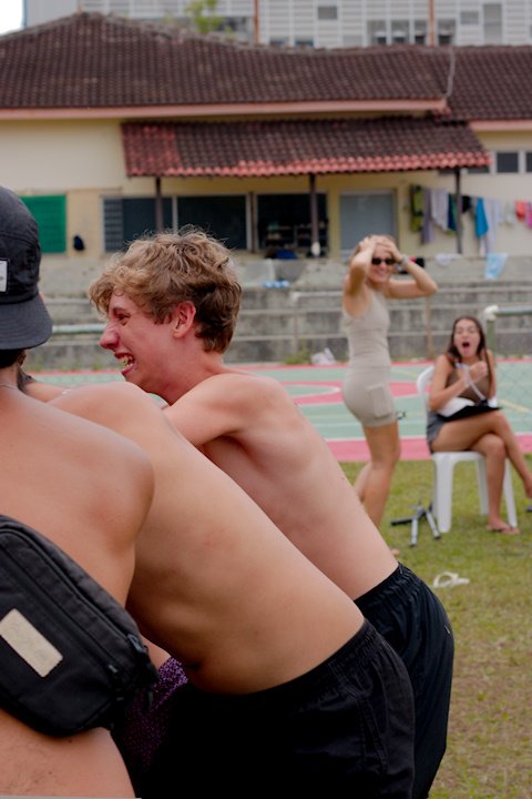 Nessa beeeela manhã os Araponga precisavam se refrescar! Encheram várias bexigas de água e partiram para o bosque, onde encontraram um caminho de obstáculos a ser percorrido! E tudo isso com a bexiga em mãos, sem derrubar! Ao fim, tinham que sentar na bexiga com toda a força para estourá-la!