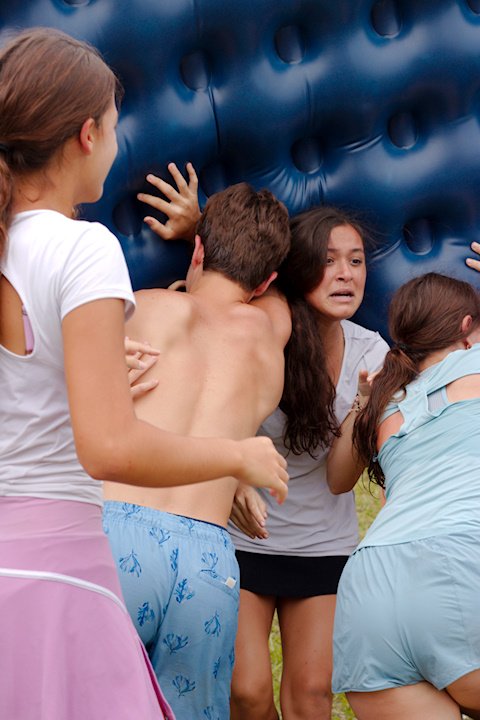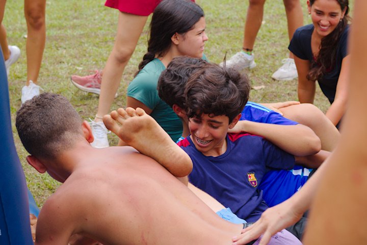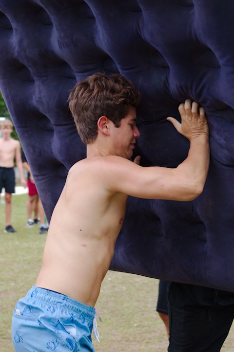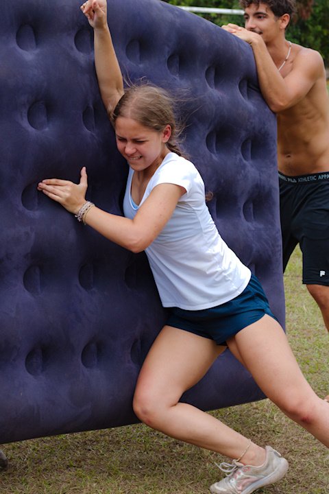 Após o lanche, estavam cheios de energia e partiram para um dos jogos mais amados do Arraial: A Muralha! Com um pouquinho imaginação, papais, vocês verão que um colchão de ar não é apenas isso, mas sim um gigantesco muro colossal que seus filhos, fortes como são, empurraram até território inimigo, numa batalha monumental que os levou a vitória certa!