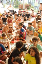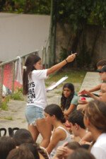 Hoje, no arraial o dia foi de produções artísticas. Nossos passarinhos tiveram a grande missão de preparar elementos para se apresentar ao final do dia. Separados pelos grupos das gincanas, eles tiveram algumas metas para cumprir e ganhar pontos para seus grupos. Com isso, cada pessoa construiu elementos de acordo com suas habilidades. Teve acampante que virou mascore, que fez peça de teatro, constriu paniel e pensou nas esculturas.