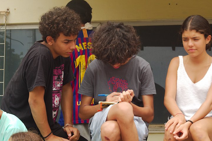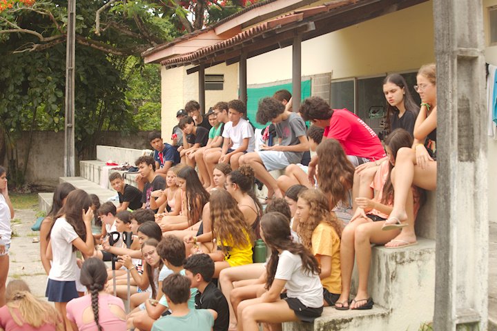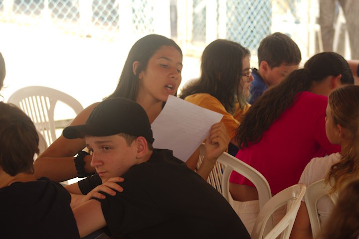 Hoje, no arraial o dia foi de produções artísticas. Nossos passarinhos tiveram a grande missão de preparar elementos para se apresentar ao final do dia. Separados pelos grupos das gincanas, eles tiveram algumas metas para cumprir e ganhar pontos para seus grupos. Com isso, cada pessoa construiu elementos de acordo com suas habilidades. Teve acampante que virou mascore, que fez peça de teatro, constriu paniel e pensou nas esculturas.