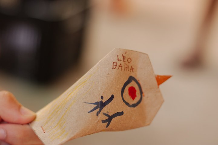 Depois de um descanso merecido após guerrar por tronos, o Tuiuiú esfriou o corpo e soltou a imaginação com uma oficina pra lá de especial. Os acampantes tiveram que construir passarinhos com rolos de papéis reciclavéis. A criatividade tomou conta da tarde e cada acampante do grupo deu nome e forma ao seu passarinho, que foi representado pela sua história atráves das cores