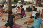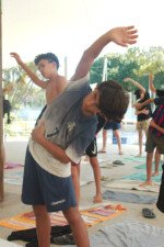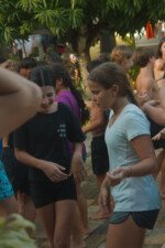 Estamos, tio Jão! Aah, nada como uma sequência de exercícios de alongamento depois do descanso, não é mesmo? Os bacuraus que o digam! A primeira atividade da tarde foi descobrir e testar os limites do corpo numa oficina relaxante e revigorante com o tio Jão. Estica ali, dobra aqui, até todos os músculos do corpo acordarem para o que veio logo em seguida. Mas quem acabou roubando a cena foi a tia Flora, que colocou todos os seus anos de yoga para jogo e impressionou a todos com sua grande flexibilidade. No final, todos desfrutaram dos exercícios e despertaram o corpo (exceto a fotógrafa que vos fala pois ela estava fazendo os registros).