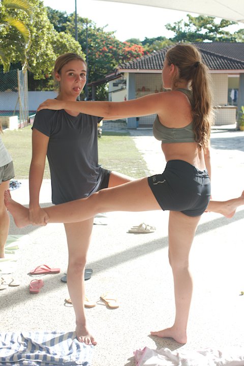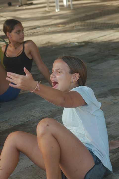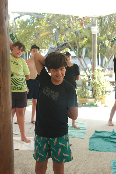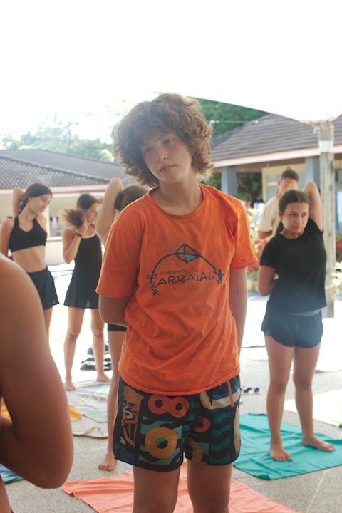 Estamos, tio Jão! Aah, nada como uma sequência de exercícios de alongamento depois do descanso, não é mesmo? Os bacuraus que o digam! A primeira atividade da tarde foi descobrir e testar os limites do corpo numa oficina relaxante e revigorante com o tio Jão. Estica ali, dobra aqui, até todos os músculos do corpo acordarem para o que veio logo em seguida. Mas quem acabou roubando a cena foi a tia Flora, que colocou todos os seus anos de yoga para jogo e impressionou a todos com sua grande flexibilidade. No final, todos desfrutaram dos exercícios e despertaram o corpo (exceto a fotógrafa que vos fala pois ela estava fazendo os registros).