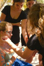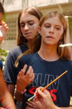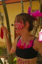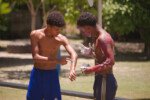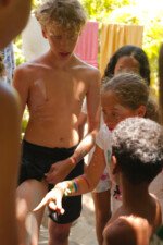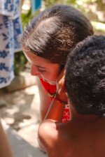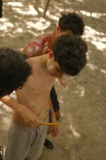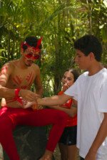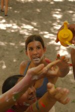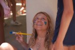 Foi um jogo eletrizante, vimos pequenos guerreiros correndo pelo Arraial para proteger suas marcas coloridas e muita risada quando alguém acabava virando um “fantasma” branco no meio do caminho.