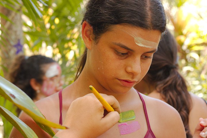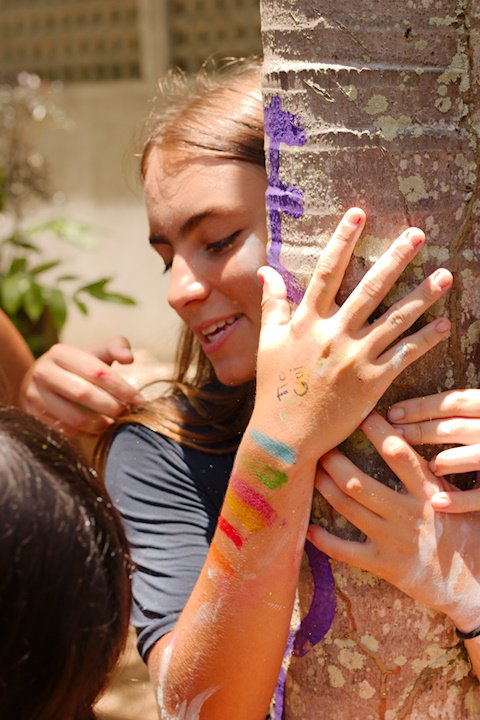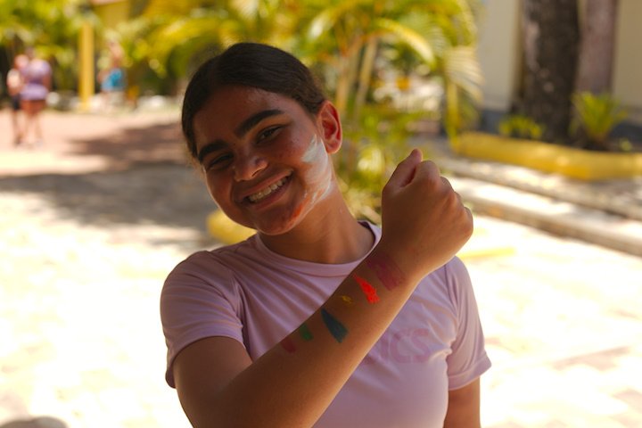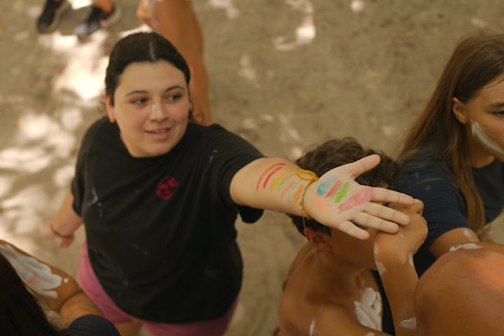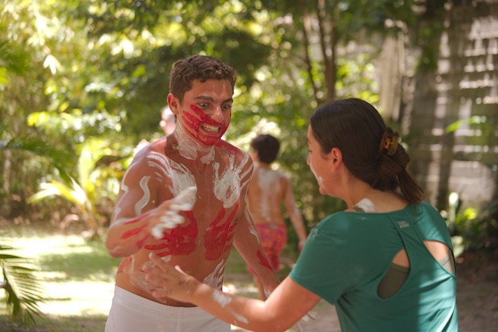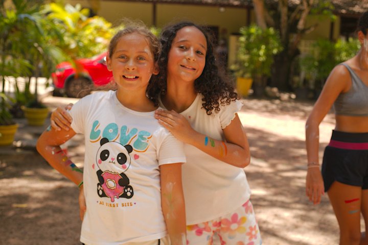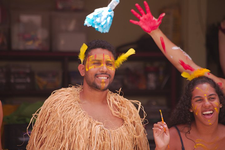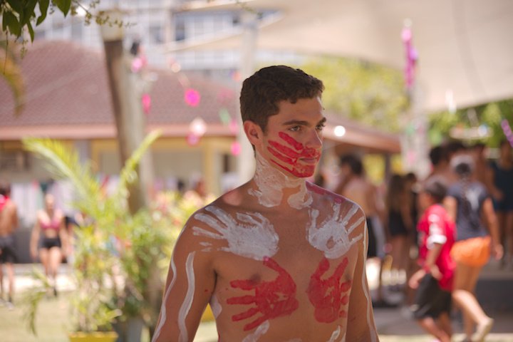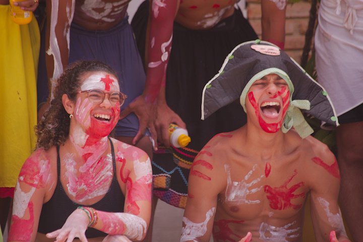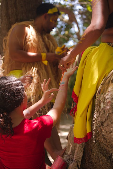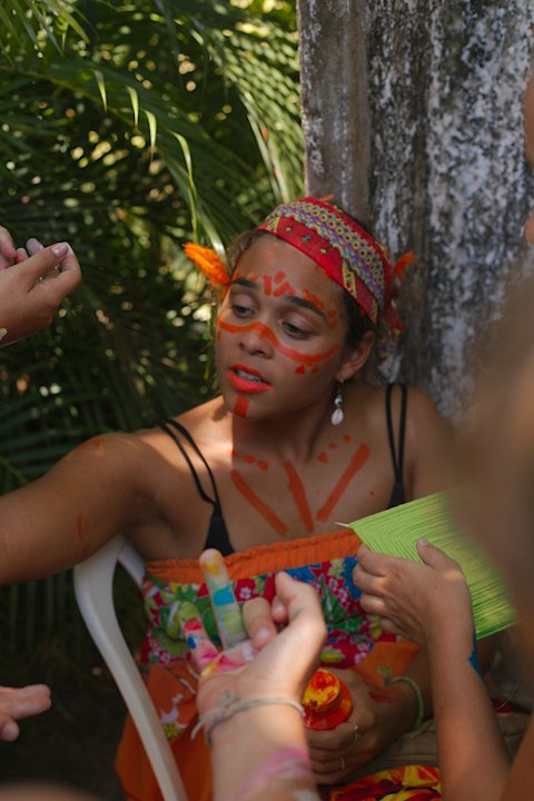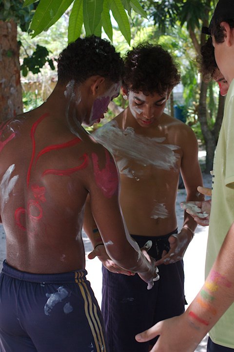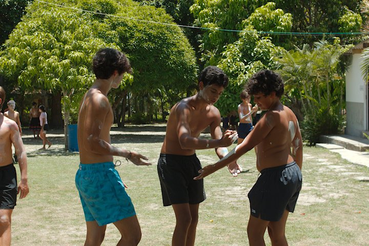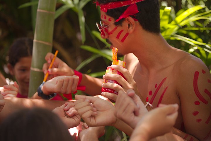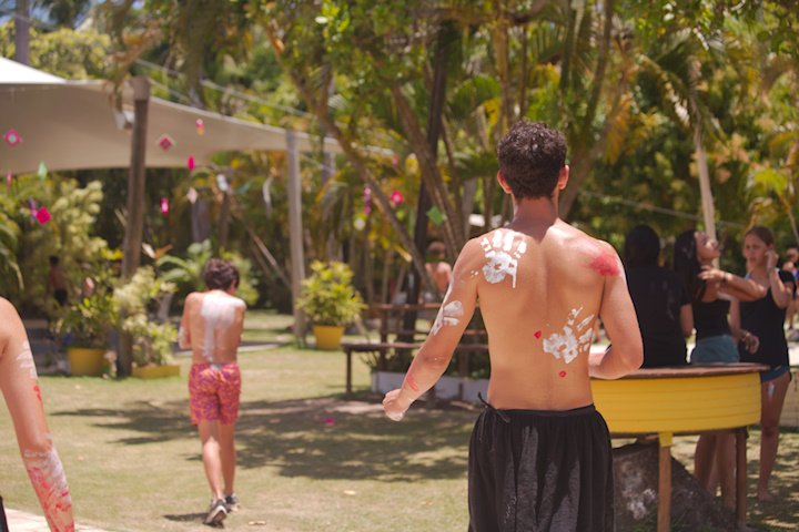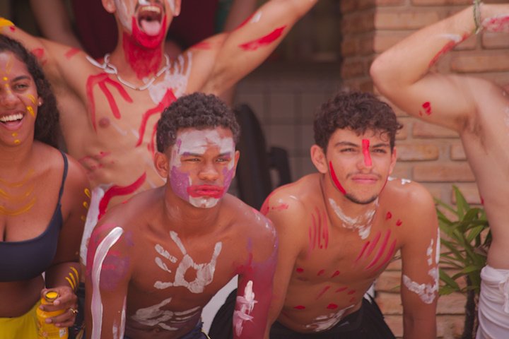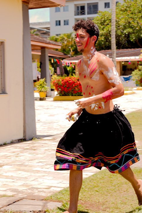 Foi um jogo eletrizante, vimos pequenos guerreiros correndo pelo Arraial para proteger suas marcas coloridas e muita risada quando alguém acabava virando um “fantasma” branco no meio do caminho.